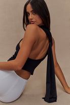 The CATELYN Asymmetrical Scuba Jersey Top is the perfect blend of modern sophistication and sleek style. Featuring a sleeveless design with a flattering round neckline, this top offers a fitted, body-hugging silhouette for a polished, confident look. The back ruched sash detail adds a touch of drama and dimension, while the open back creates a bold, eye-catching finish. Fully lined for comfort, this top effortlessly elevates any ensemble, making it ideal for both casual and dressy occasions