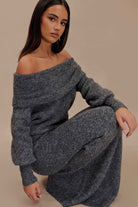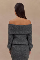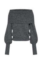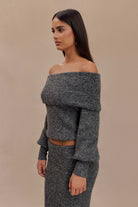 Charlotte Off Shoulder Knit Long Sleeve Top - Charcoal Marle