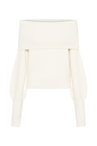 Charlotte Off Shoulder Knit Long Sleeve Top - Ivory