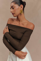 Colette Boat Neck Mesh Top - Dark Chocolate