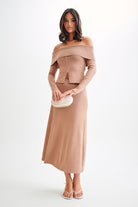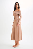 The DIEDRE Buttoned Off Shoulder Knit Top is a chic and versatile addition to any wardrobe. Featuring a stylish Bardot neckline that elegantly showcases the shoulders, this top adds a touch of sophistication to any outfit. The long sleeves and semi-functional centre-front placket enhance its modern appeal, while the longline cut provides a flattering silhouette. An overlay panel adds unique detail and dimension, and the unlined knit fabric ensures a comfortable and lightweight feel. Perfect paired with casually with jeans or the Diedre A-Line Knit Maxi Skirt dressy occasions, the Diedre Buttoned Off Shoulder Knit Top is a must-have for effortless style.