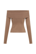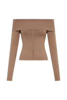 Diedre Buttoned Off Shoulder Knit Top - Pecan