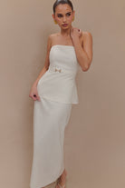 The DORA Strapless Linen Top is the perfect fusion of chic elegance and contemporary style. Featuring a strapless design and longline silhouette, this top is both flattering and versatile. The belted waist detail cinches the figure, with a stylish centre front buckle adding a bold touch. Finished with a side zip for easy wear, this top is ideal for pairing with everything from tailored pants to skirts, offering effortless sophistication for day or night. Crafted from lightweight linen, it’s the ultimate piece to add fresh, breathable style to your wardrobe. Pair with the Dora Linen Midi Skirt for a sleek, coordinated look.