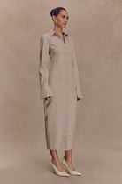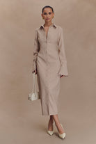 Dorian Fitted Shirt Midi Dress - Wheat Marle
