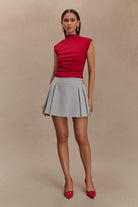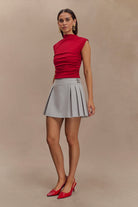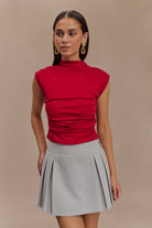 The ELLIA High Neck Sleeveless Top is a chic and versatile addition to any wardrobe, offering a sophisticated touch to both casual and tailored looks. Featuring a high neckline and sleeveless design, this top showcases elegant ruched side details that enhance its flattering silhouette. The longline cut adds a sleek, elongated shape, while the lined jersey fabrication ensures a comfortable, smooth fit. Ideal for pairing with jeans for a casual yet refined look or with tailored pants for a polished, professional ensemble, the Ellia Top seamlessly blends style with versatility.