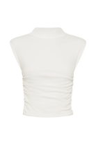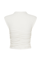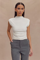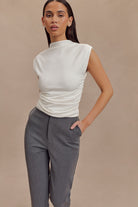The ELLIA High Neck Sleeveless Top is a chic and versatile addition to any wardrobe, offering a sophisticated touch to both casual and tailored looks. Featuring a high neckline and sleeveless design, this top showcases elegant ruched side details that enhance its flattering silhouette. The longline cut adds a sleek, elongated shape, while the lined jersey fabrication ensures a comfortable, smooth fit. Ideal for pairing with jeans for a casual yet refined look or with tailored pants for a polished, professional ensemble, the Ellia Top seamlessly blends style with versatility.
