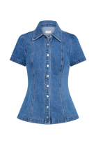 Ellie Denim Short Sleeve Top - 70's Blue