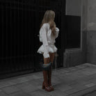 • Flattering Pleated Skirt for Elegant Movement: The pleated skirt brings a sense of fluidity and grace to your ensemble, adding a touch of feminine charm to this otherwise structured piece, perfect for enhancing your natural silhouette.