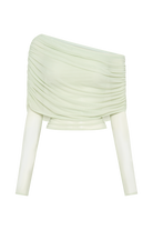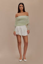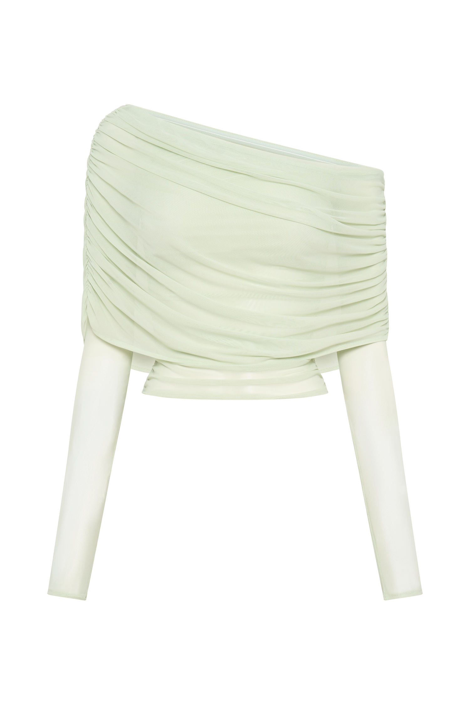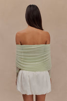 Everly Sheer Mesh Off Shoulder Top - Pastel Green