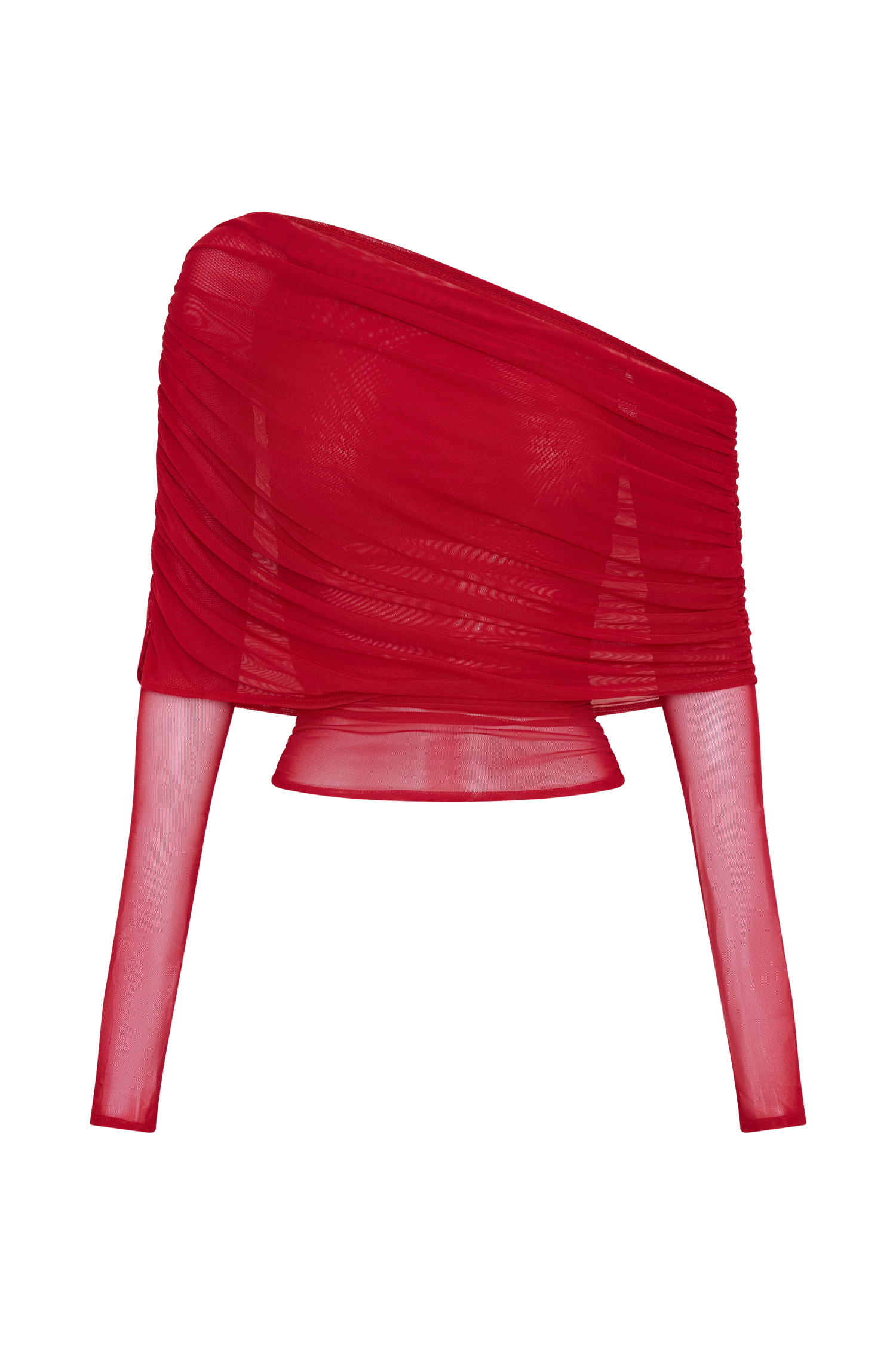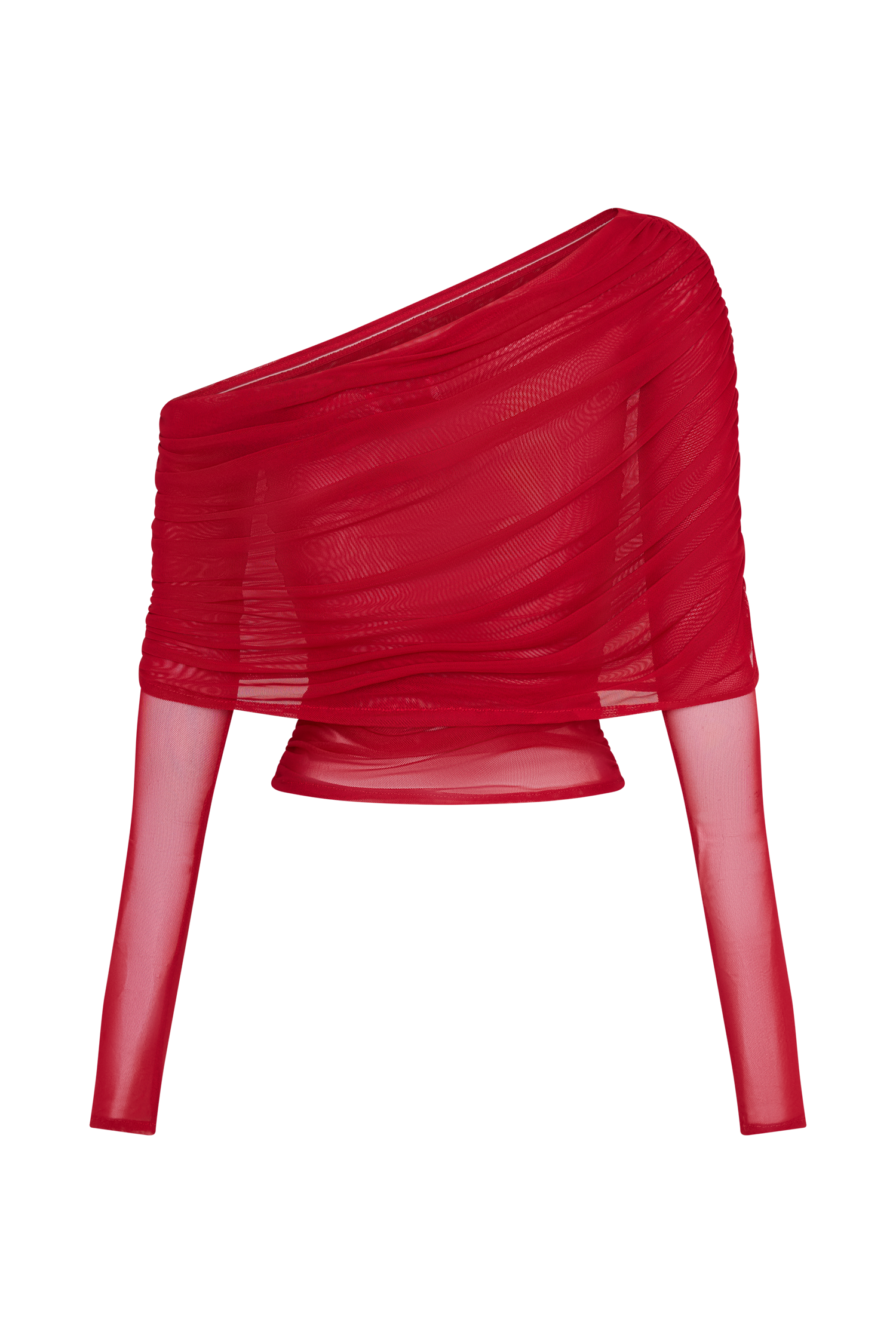 Everly Sheer Mesh Off Shoulder Top - Ruby