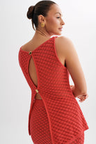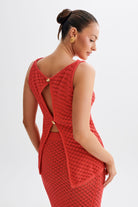 Meet the GUILIANA Sleeveless Knit Top, where sophistication meets modernity in perfect harmony. Its boat neckline frames the shoulders elegantly, exuding timeless charm with a touch of allure. Crafted with meticulous attention to detail, the special knit design adds texture and dimension to your ensemble. Featuring an alluring open back detail and a longline cut for added sophistication, it's a versatile piece that effortlessly transitions from day to night. With a back functional button for easy wear, the Guiliana Knitted Sleeveless Top is a wardrobe essential for those who appreciate refined elegance and effortless style. Pair with the Guiliana Knit Maxi Skirt to complete the look.