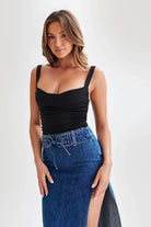The HAILEY is a classic top that features a gorgeous sweetheart neckline and shoulder straps, accentuating your décolletage while securing a comfortable fit. The ruched bodice enhances its figure-hugging silhouette. The medium stretch allows this piece to move with the body which makes it ideal for all-day wear. Pair it with your favourite MESHKI denim jeans to complete the look.