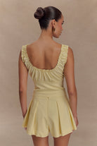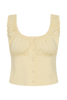 The INES Sleeveless Ruched Top is the perfect blend of elegance and comfort. Featuring a ruched bust panel for a flattering fit, this top enhances your shape while offering a touch of texture. The fitted waist creates a sleek silhouette, while the button front adds a chic detail for added visual interest. The elastic neckline ensures a comfortable, flexible fit that moves with you. Ideal for warm days, this versatile top pairs beautifully with Issy Shorts, creating a stylish and effortless look for both casual outings and weekend getaways.