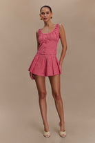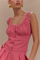 The INES Sleeveless Ruched Top is the perfect blend of elegance and comfort. Featuring a ruched bust panel for a flattering fit, this top enhances your shape while offering a touch of texture. The fitted waist creates a sleek silhouette, while the button front adds a chic detail for added visual interest. The elastic neckline ensures a comfortable, flexible fit that moves with you. Ideal for warm days, this versatile top pairs beautifully with Issy Shorts, creating a stylish and effortless look for both casual outings and weekend getaways.