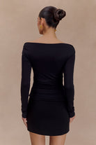 Elevate your wardrobe with the JADEN Off Shoulder Recycled Nylon Top, a chic fusion of sustainability and style. Featuring a sophisticated Bardot neckline, this top showcases your shoulders beautifully while adding an elegant touch. The centre front cutout introduces a daring yet refined element, making it perfect for special occasions. Long sleeves provide graceful contrast to the off-shoulder design, while the gathered overlapping bust panels create a flattering silhouette. Crafted in a longline style and fully lined for comfort, this top pairs effortlessly with high-waisted trousers or a sleek skirt.