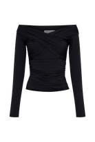 Jaden Off Shoulder Recycled Nylon Top - Black