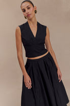 The Jemima Sleeveless Cross Over Top is a stylish essential that effortlessly combines elegance with modern design. Featuring a flattering V neckline, this top enhances your décolletage while maintaining a chic silhouette. The fitted bodice provides a tailored look, perfect for highlighting your shape. An open back adds a touch of allure, making it ideal for both day and evening wear. With a convenient centre back zip, this top is easy to slip on and off, ensuring a comfortable fit. Pair it with the Jemima Cotton Midi Skirt for a coordinated ensemble that radiates sophistication and style.