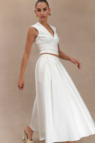 The Jemima Sleeveless Cross Over Top is a stylish essential that effortlessly combines elegance with modern design. Featuring a flattering V neckline, this top enhances your décolletage while maintaining a chic silhouette. The fitted bodice provides a tailored look, perfect for highlighting your shape. An open back adds a touch of allure, making it ideal for both day and evening wear. With a convenient centre back zip, this top is easy to slip on and off, ensuring a comfortable fit. Pair it with the Jemima Cotton Midi Skirt for a coordinated ensemble that radiates sophistication and style.