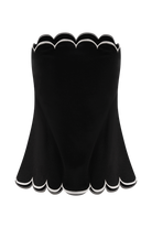 The JUDITH Strapless Scallop Top is a fresh take on feminine tailoring, designed to flatter with clean lines and delicate finishes. Featuring a longline strapless silhouette, this top is detailed with a scalloped neckline and hem, both accentuated by contrast stitching for added dimension. The straight elasticated back ensures a secure and comfortable fit. Pair with the Judith Scallop Shorts for a coordinated look that’s equal parts playful and polished.
