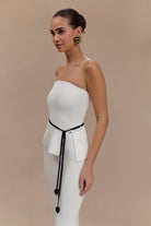 Keaton Strapless Rose Tie Knit Top - White And Black