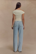 Turn up the drama in the KINSLEY Slinky Top with Hardware, a figure-hugging silhouette designed to stand out. Featuring an asymmetrical neckline with gathered shoulder seams, this top is elevated with gold hardware detailing for a polished finish. Fully lined for a smooth, supportive fit, this top is the perfect blend of elegance and edge. Pair with the Caitlin Mid Rise Denim Flare Jeans for a sleek, balanced look that’s effortlessly put together.