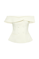 The KRISTA Strapless Suiting Top boasts a chic and contemporary design with its off-the-shoulder silhouette. Featuring a double-breasted closure, this top exudes a touch of sophistication and flair. Non-functional pockets add a stylish element to the fitted design, creating a sleek and polished look. The top is lined for both comfort and a refined finish. Elevate your wardrobe with the Krista Strapless Suiting Top, a versatile piece that effortlessly combines modern trends with timeless elegance.