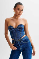 The LANA Denim Cupped Corset Top is a captivating blend of edgy sophistication and timeless style. Featuring a princess neckline and corset shape, it exudes elegance and allure, while the rounded hem adds a modern touch. Panel lines enhance the silhouette, creating a flattering fit that accentuates your curves. With bust cups providing structure and support. With removable and adjustable straps for a customisable fit, this top offers both comfort and style. Whether you're dressing up for a night out or adding a touch of flair to your everyday look, the Lana Corset Top is sure to make a statement wherever you go.