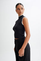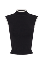 Laurina High Neck Contrast Top - Black