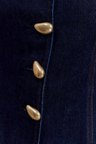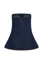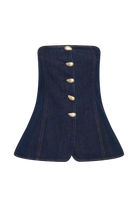 Lennox Strapless Long Line Button Top - Indigo Blue