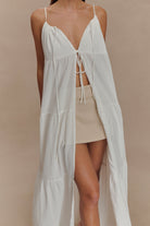 The LENNY Front Tie Top is your go-to for relaxed romance with a playful twist. Designed with a gathered neckline and delicate spaghetti straps, this maxi silhouette features a tie-front detail and softly gathered tiers that flow into a full hem. The relaxed fit makes it perfect for sun-soaked days and balmy evenings alike—just add sandals and you’re set.
