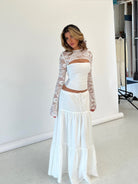 Bold yet refined, the Liana Sheer Lace Top features a form-fitting silhouette with delicate lace accents on the sleeves and back. Slightly sheer and designed to flatter, it’s the perfect piece for statement looks—best styled with nipple covers for a confident finish.
