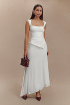 The LISETTE Asymmetric Recycled Nylon Top effortlessly blends modern design with sustainable style. Featuring a wide neckline and cap sleeves, this top offers a relaxed yet elegant silhouette. The asymmetrical hem adds a dynamic touch, creating visual interest and movement. Made from stretch fabric, it ensures a comfortable and flexible fit, while the lined construction provides a refined finish. Perfect for casual outings or dressed-up occasions, the Lisette Top pairs beautifully with jeans, delivering a chic and contemporary look that balances sustainability with fashion.