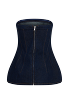 Madelyn Strapless Longline Denim Top - Indigo Blue