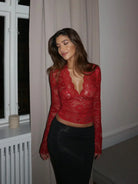 Is a stunning lace top made from high-quality materials with added stretch, allowing it to perfectly hug your body for a seamless fit. The top is designed with special attention to detail, including long sleeves that add a touch of elegance and style to any outfit. The perfect top to wear for both casual and festive occasions—a must-have in your summer wardrobe!