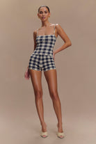 Marcie Sleeveless Knit Top - Navy Gingham