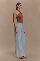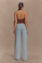 The MARIPOSA Slinky Halter Top brings effortless glamour to your event-ready wardrobe. Designed with a ruched halter neckline and finished with a sleek hardware clasp, this longline silhouette flatters the form while leaving a striking open back. Fully lined for a smooth, supportive fit, this top is perfect for dressing up.