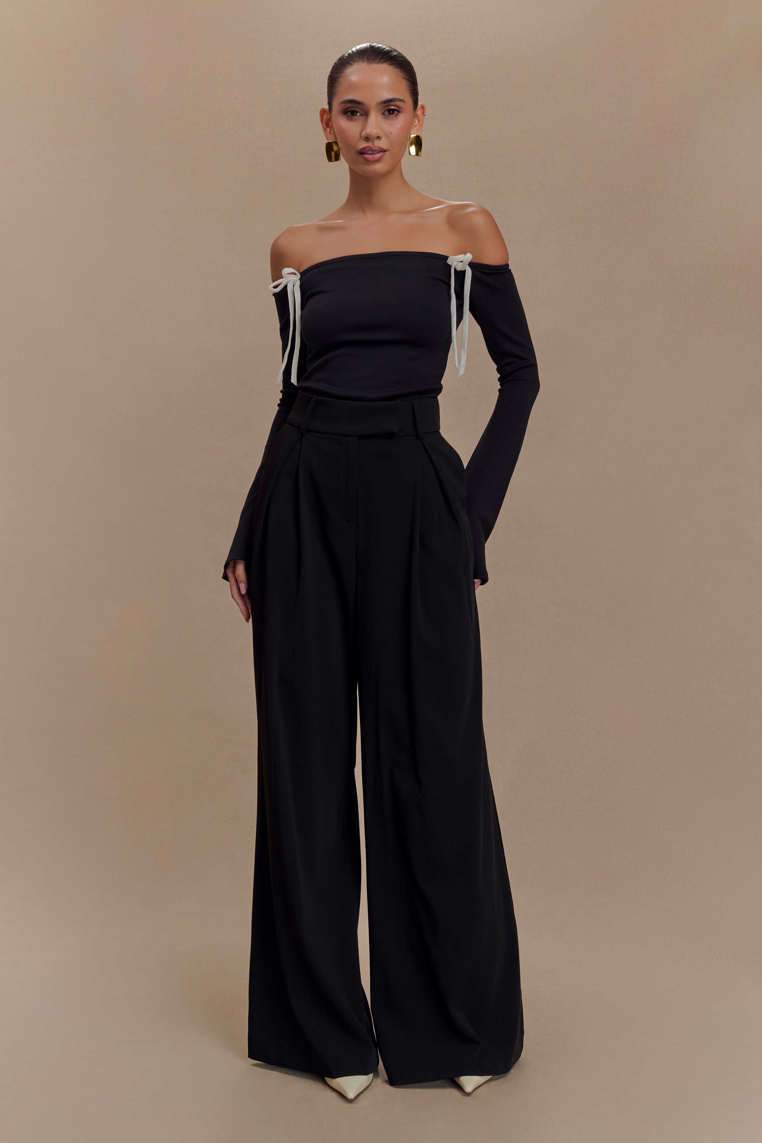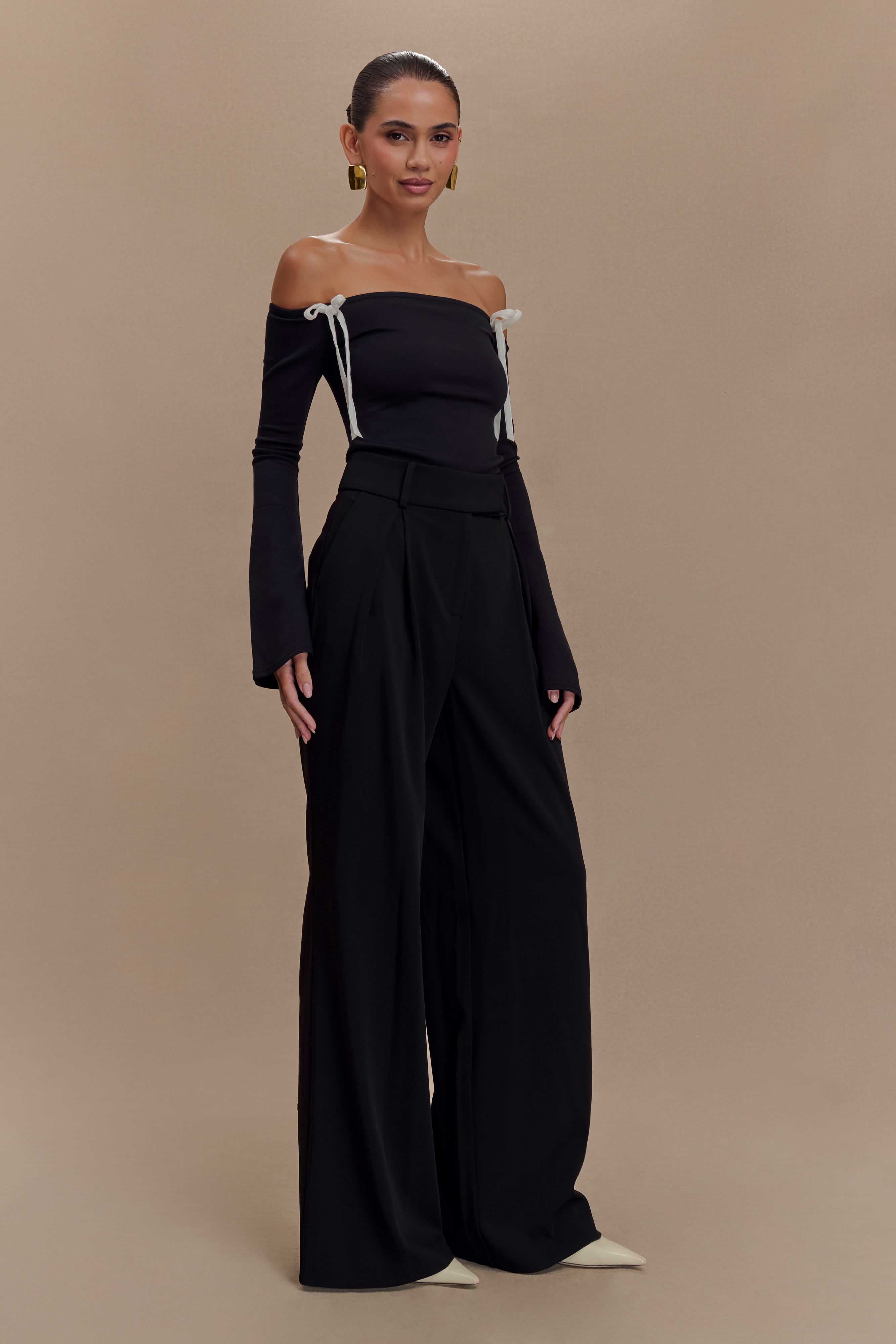 The MARLENE Scuba Jersey Contrast Top is a sophisticated and bold statement piece that combines elegance with a modern twist. Featuring a flattering Bardot neckline, this top beautifully frames the shoulders, while long sleeves add a touch of refinement. Crafted from scratch fabrication, it offers a sleek, figure-hugging fit, and its unlined design provides a lightweight feel. The standout velvet contrast bow detail adds a luxurious touch of texture and contrast, making this top a versatile addition to any wardrobe.