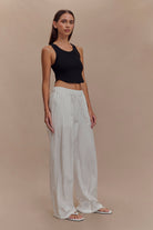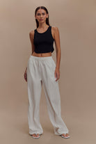 The MORGANA Ribbed Tank Top is a versatile staple that blends comfort with modern style. Featuring a crew neckline and a racer-back shape, this top offers a sleek and sporty silhouette. The cropped length and rounded hem add a flattering, contemporary touch, making it perfect for layering or wearing on its own. Crafted from ribbed fabrication, it provides both texture and stretch for a comfortable fit. Finished with binded neckline and armholes, this tank combines durability with polished details. Pair it with the Campbell Cotton Wide Leg Pants for a relaxed yet refined outfit that transitions effortlessly from lounging to stepping out.