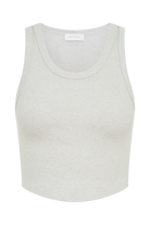 The MORGANA Ribbed Tank Top is a versatile staple that blends comfort with modern style. Featuring a crew neckline and a racer-back shape, this top offers a sleek and sporty silhouette. The cropped length and rounded hem add a flattering, contemporary touch, making it perfect for layering or wearing on its own. Crafted from ribbed fabrication, it provides both texture and stretch for a comfortable fit. Finished with binded neckline and armholes, this tank combines durability with polished details. Pair it with the Campbell Cotton Wide Leg Pants for a relaxed yet refined outfit that transitions effortlessly from lounging to stepping out.