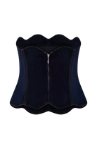 The OAKLEY Strapless Scallop Denim Top blends structured edge with soft detailing. Designed in a corset-style silhouette, this strapless top features panelled construction that contours the body for a flattering, supportive fit. The scalloped neckline adds a touch of femininity, balancing the boldness of the denim with refined detail. An exposed centre back zipper adds a modern finish, while the fitted shape makes it perfect for styling from day to night.