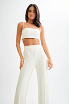 The Perry Suiting Crop Top is a chic and contemporary piece, perfect for a modern wardrobe. With its cropped length and centre back hook & eye closure, it offers a sleek and tailored look. The adjustable spaghetti straps ensure a perfect fit. This versatile top pairs beautifully with the Letitia Suiting Mini Skirt with Buckle, or with the Allanah Straight Leg Pant for a sophisticated and stylish ensemble.