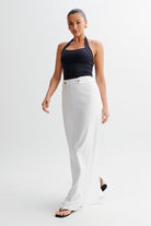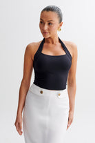 The RENEE Halter Top is a modern and stylish piece perfect for any trendy wardrobe. It features a sleek straight neckline and a halter design that elegantly frames the shoulders. The open back adds a touch of allure, while the cropped length keeps it contemporary and chic. Fully lined for comfort, this top is ideal for pairing with high-waisted bottoms for a fashionable and polished look.