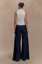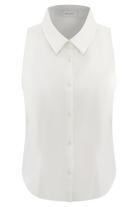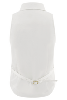 The SELENE Sleeveless Halter Shirt is a fresh update to classic shirting. Designed with a sharp collar and button front opening, this fitted silhouette features a back belt detail that cinches the waist for a flattering, feminine shape. The curved hem adds softness to its structured design, while the unlined finish keeps it lightweight and breathable. Perfect for polished days or elevated layering, this shirt is your go-to for versatile, refined styling.