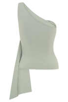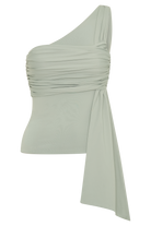Sera One Shoulder Recycled Nylon Top With Drape - Basil