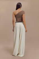 The SOLENE One Shoulder Recycled Nylon Twist Top is a sleek and eco-friendly fashion statement that combines modern design with sustainable materials. Featuring a striking twist detail at the centre front and an asymmetrical neckline, this top highlights a chic one-shoulder design that adds a touch of sophistication. The lined construction ensures a smooth and comfortable fit, while the stretch fabrication offers flexibility and ease of movement. Perfectly paired with the Jacqueline Pleated Wide Leg Pants, the Solene Top creates a seamless, stylish ensemble that is both environmentally conscious and fashion-forward.