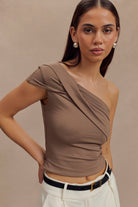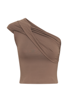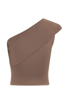 Solene One Shoulder Recycled Nylon Twist Top - Smoke