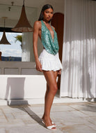 Chic, sleek, and effortlessly bold—the Sorella Cowl Top features a draped neckline, open back, and halter silhouette for elevated allure. With thick over-neck straps and adjustable ties, it’s the perfect mix of comfort and sophistication.
