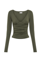 The SUTTON Ruched Long Sleeve Top blends sophistication with contemporary flair. Its V neckline flatters while drawing attention to the neckline, while the ruched underbust detail adds texture and intrigue to the silhouette. Long sleeves add elegance, and the longline design offers modern appeal. With a ruched waist that accentuates curves, this top is both feminine and flattering. Lined for comfort and quality, it's a versatile wardrobe essential for day-to-night transitions with effortless style.