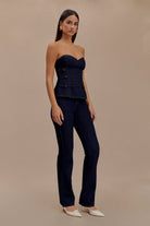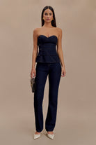 Sylas Strapless Buckle Denim Top - Indigo Blue