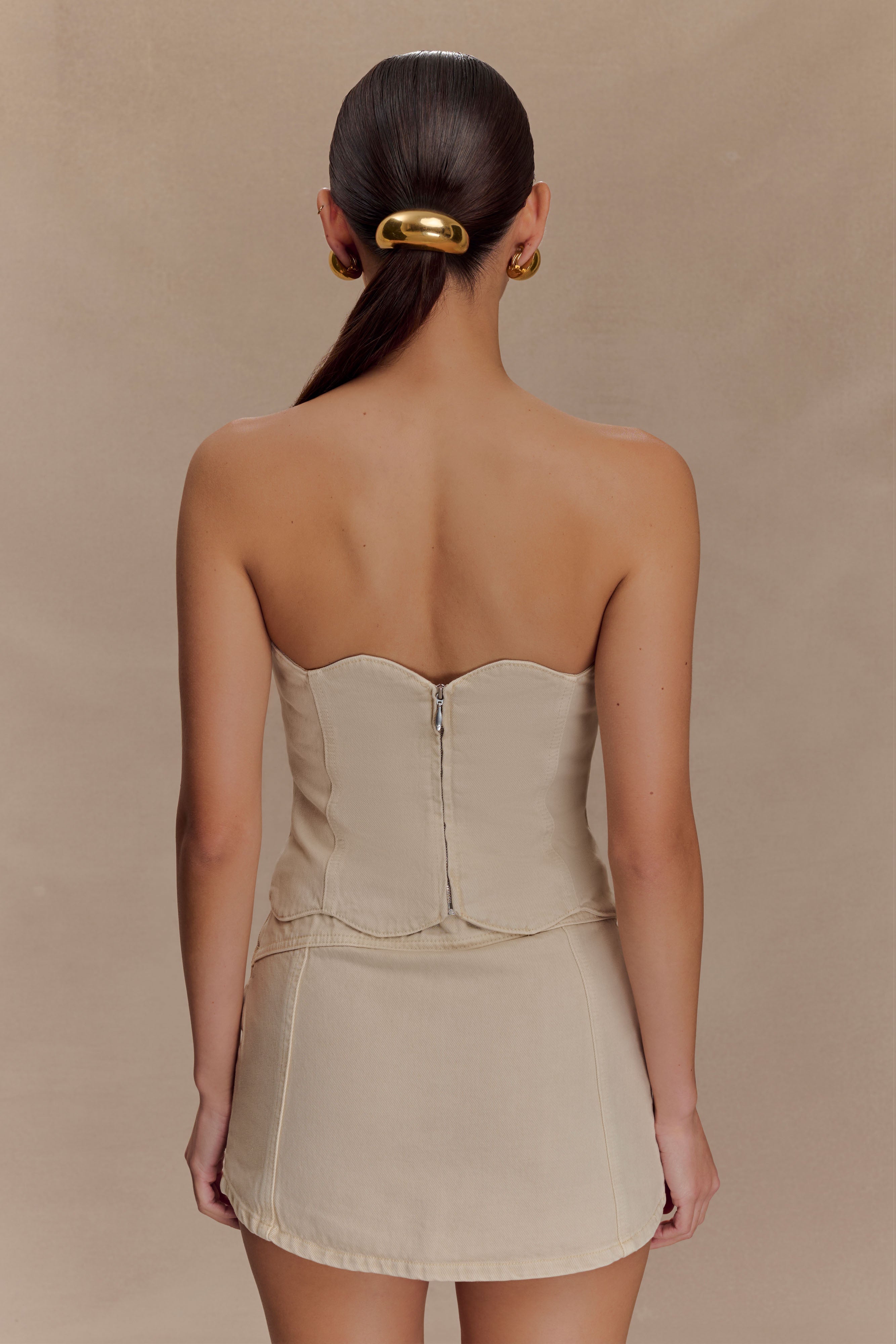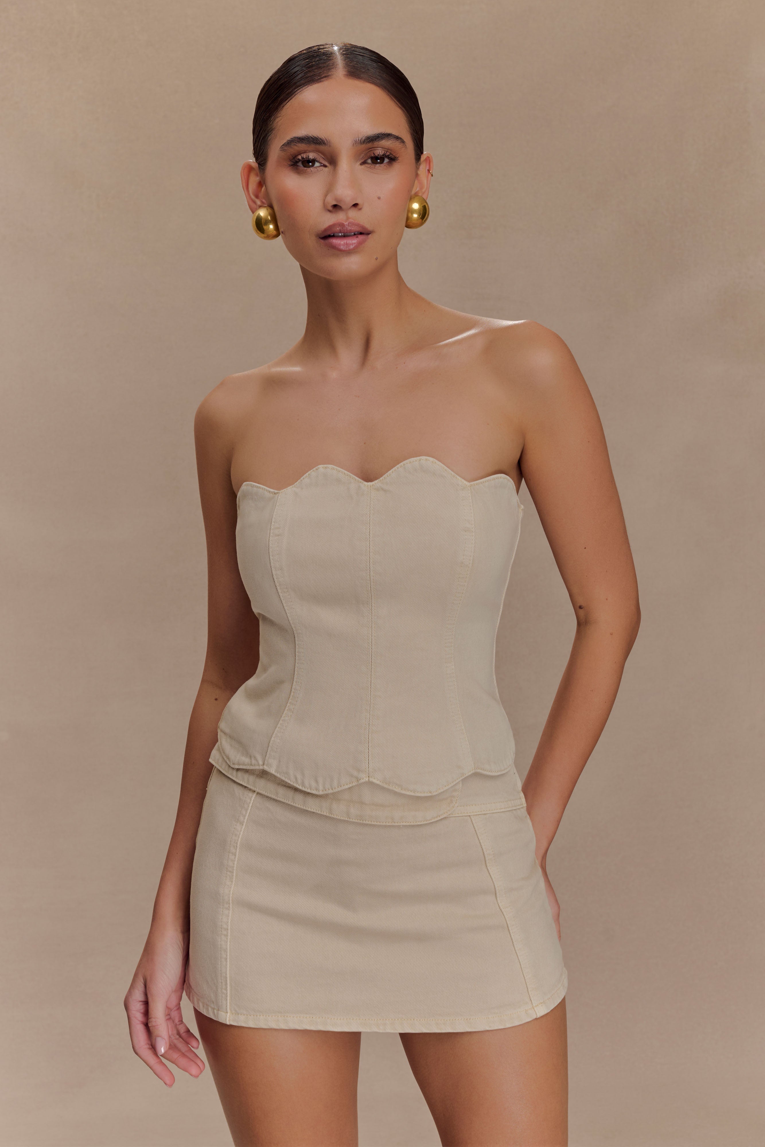 Oakley Strapless Scallop Denim Top - Stone Wash
